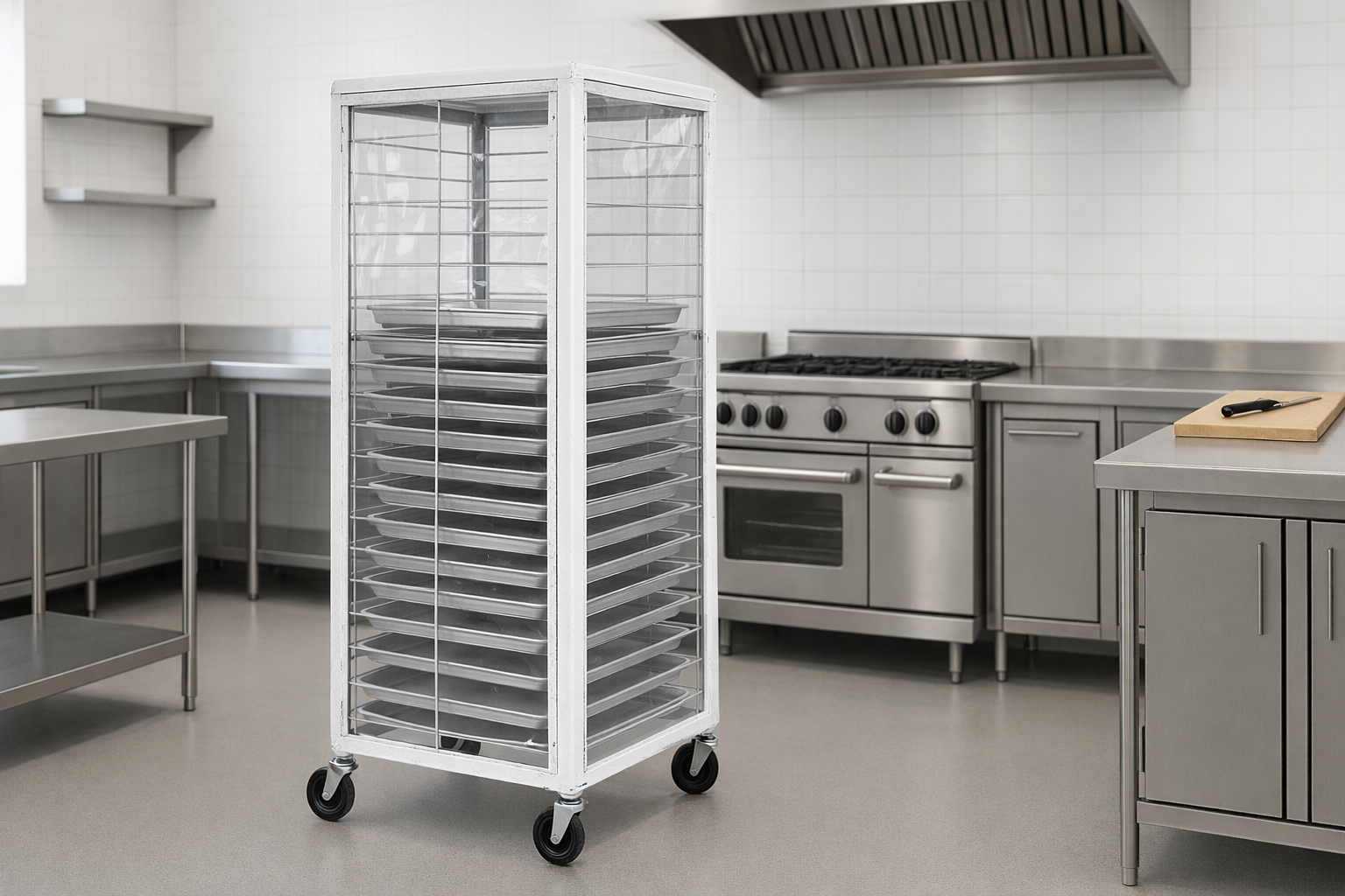 Durable covers for bakery racks, pan racks, carts, and commercial equipment. Built for foodservice, healthcare, and industrial environments.